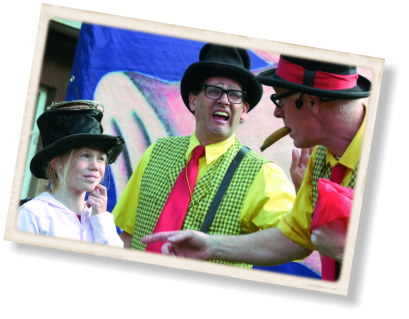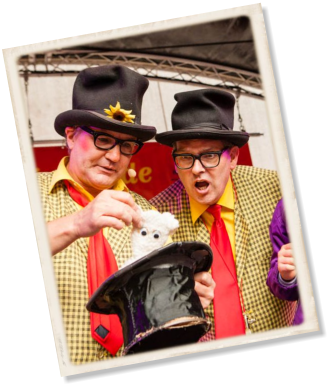 Harald, Harald & Harald, die magischen Tollpatsche zaubern auch ganz dicht und ziemlich nah dran, unter den wachsamen und staunenden Augen ihrer jungen Zuschauer.Oft werden sie größer... die Augen!Mobil unterhalten die Spaßmacher mittendrin und ringsumher, in spaßig-quirliger Art mit wundersamen Zaubereien, Gaukeleien & Taschenspielertricks.Natürlich wird das Publikum auch in diesem “Ganz-Nah-Dran-Programm” mit einbezogen...